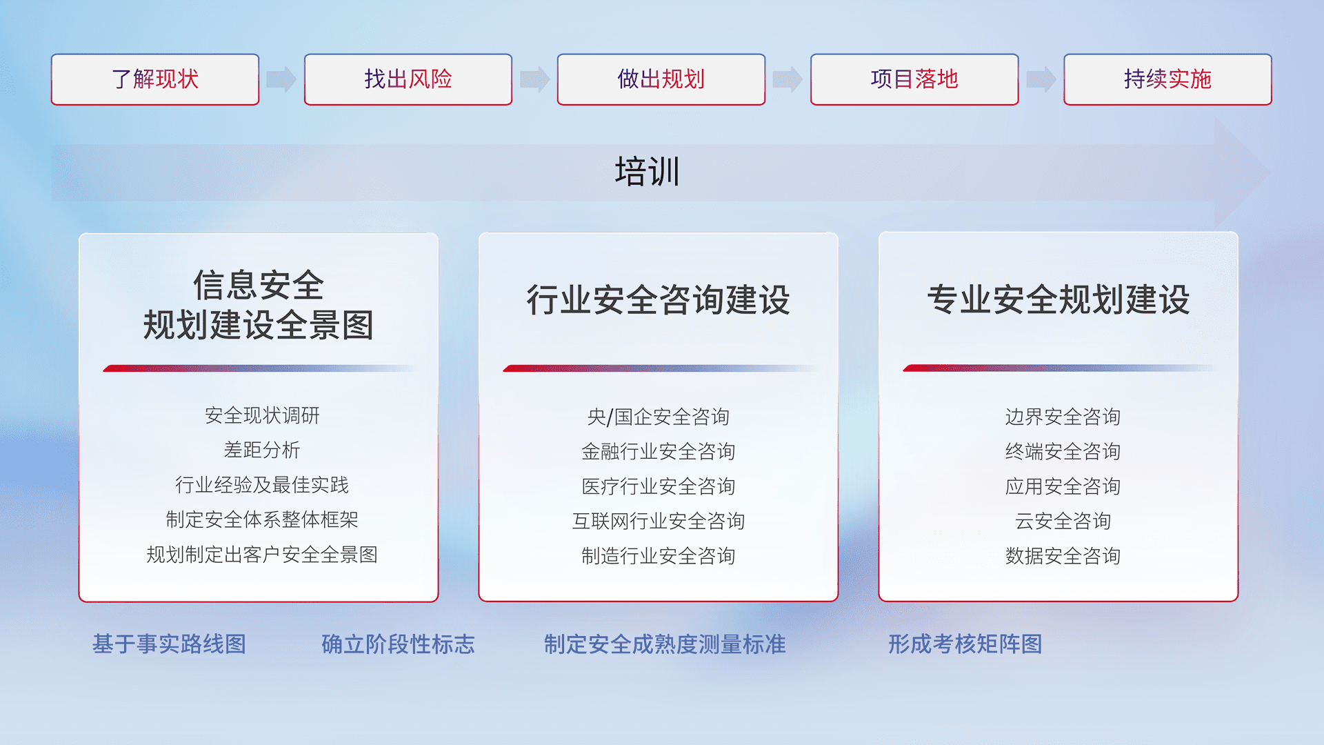 通过专业的法律咨询解读、、、合规架构体现、、、、差异化解决方案、、、测试实施支持等服务,,为客户量身打造等保合规体系。。。